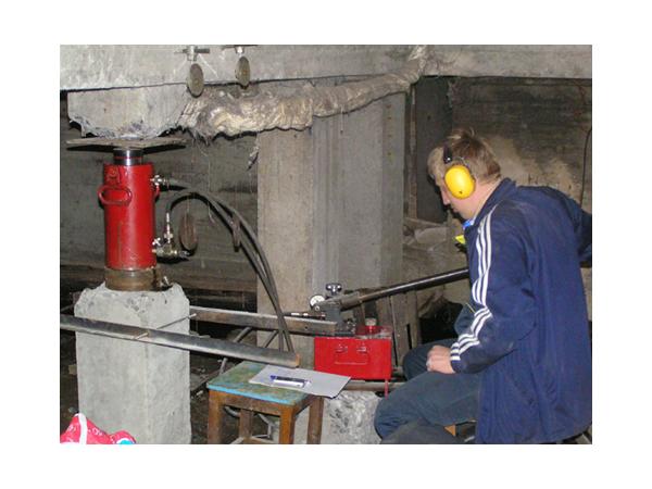 To carry on examination, it is necessary to fully open a foundation and investigate the base. To determine strength and deformation characteristics of soils under a foundation, drilling with a motor-driven auger and 60-mm screws as well as dynamic penetration testing with a hand probe are used.